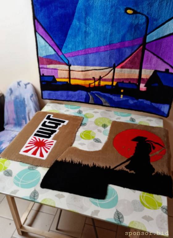 (Спойлер: изделия не продаются, на вид это просто вырвиглаз, к тому же, это непонятно из чего сделано и может доставить неприятности в виде той же аллергии. Короче, преимуществ перед коврами заводского производства никаких, а геморроя - хоть отбавляй).